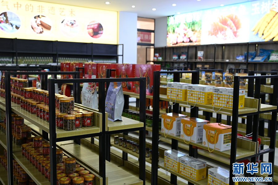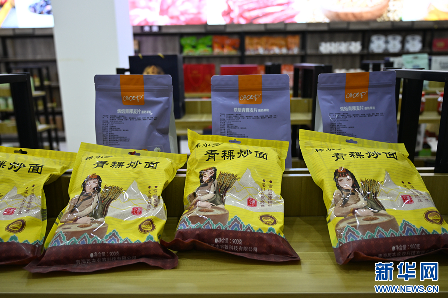 在青海助農電商人才孵化基地,貨架上整齊擺放著青海土特產。