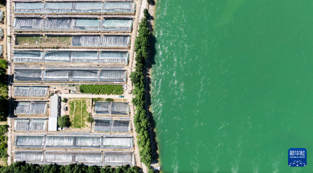 高原夏日,青海省黃南藏族自治州尖扎縣境內的黃河碧波蕩漾。藍天白云、清清河水和岸邊村落共同構成秀麗的夏日美景。