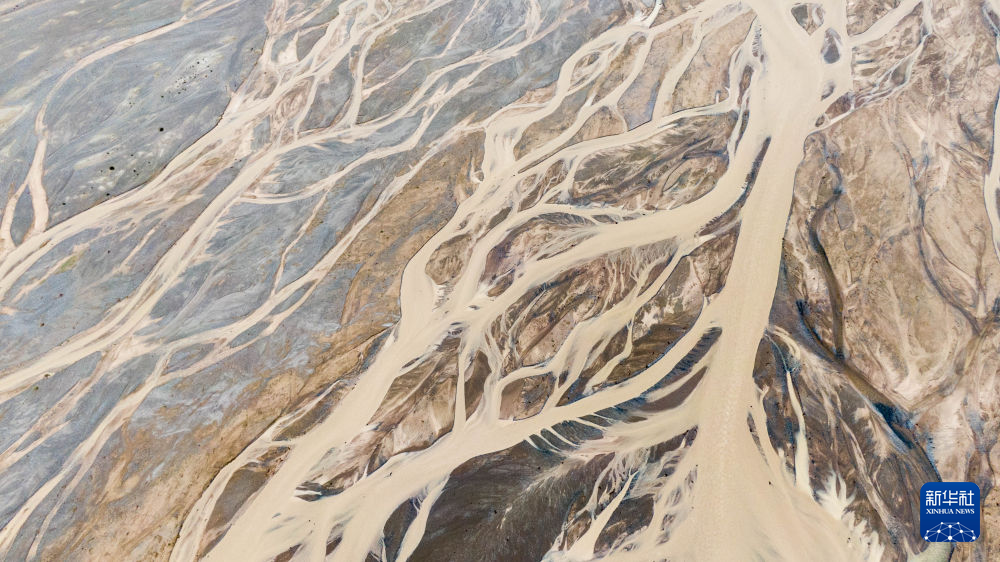高原夏日,位于青海省海西蒙古族藏族自治州格爾木市境內的野牛溝辮狀河流景色壯麗如畫。辮狀河流因多河道、多次分叉和匯聚而形如發辮,河流蜿蜒曲折。
