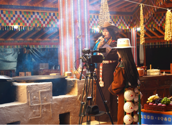 9號大帳內抑揚頓挫的曲調吸引眾多游客前往大帳觀看欣賞,大家拿出手機紛紛拍照留念,帳內工作人員熱情地為大家倒上熱騰騰的酥油奶茶,為遠道而來的客人洗塵解乏。