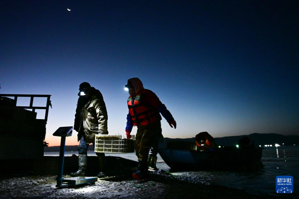 10月18日,庫區漁民將一箱剛捕撈的小銀魚上秤稱重。新華社記者 齊芷玥 攝