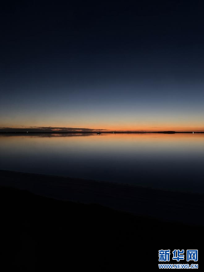 傍晚時分的察爾汗鹽湖。新華網 魚昊 攝