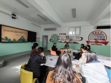 理論筑基,發揮示范引領。為強化教師理論素養,工作室提出“學研結合”機制。一是通過聚力教研,實現理論共進。每次教研活動學習兩章理論內容,結合交流與撰寫心得,擇優推送至教育局吟誦專欄。二是通過實操示范,實現方法領航。通過幻燈片演示吟誦規則,如“依字行腔”“依義行調”,并現場示范教學方法。三是通過打卡督學,實現篤行致遠。每周完成一首詩的吟誦打卡,納入評優評先考核體系。