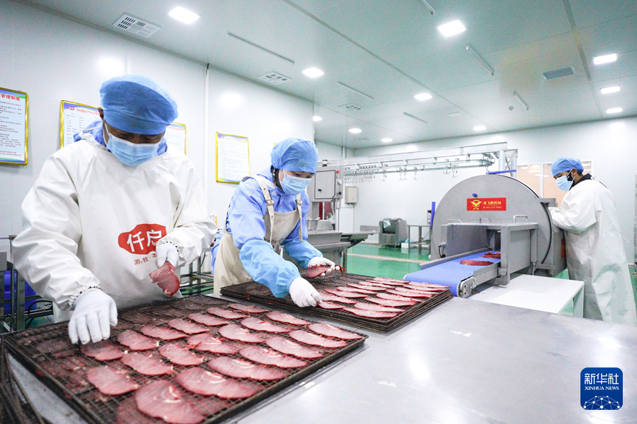 11月11日,工人在仟戶牧場的加工車間制作零食產品。